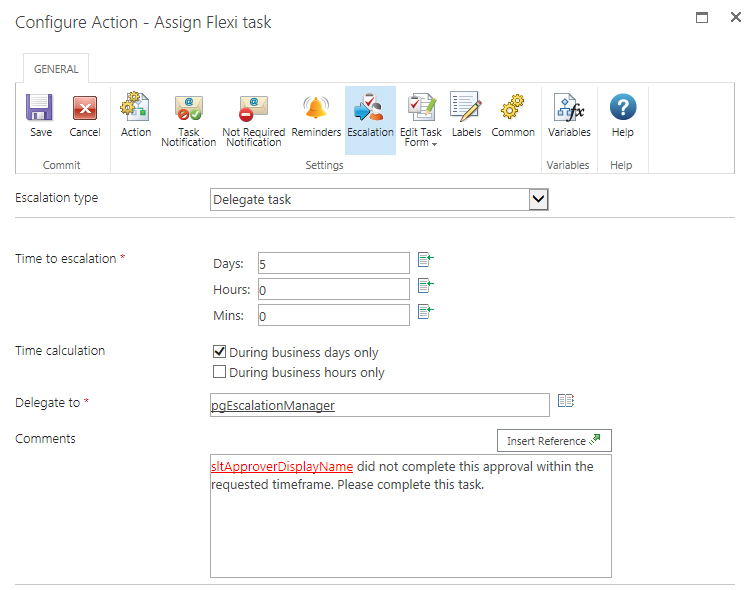Similarly, if a specified amount of time has passed and the task is not complete, the escalation feature gives you the option to either reassign the task to another user or auto-complete to allow the workflow to move on. So, if these are priorities in your business requirements, you might choose these actions over another.